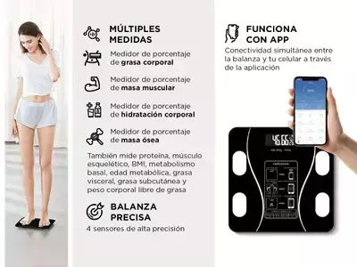 Es un excelente producto para el baño; muy práctica por hacer un seguimiento del peso de nuestro cuerpo, mediante la tecnología Bluetooth, sincronizando la información hacia el smartphone (apto para Android y iOS)